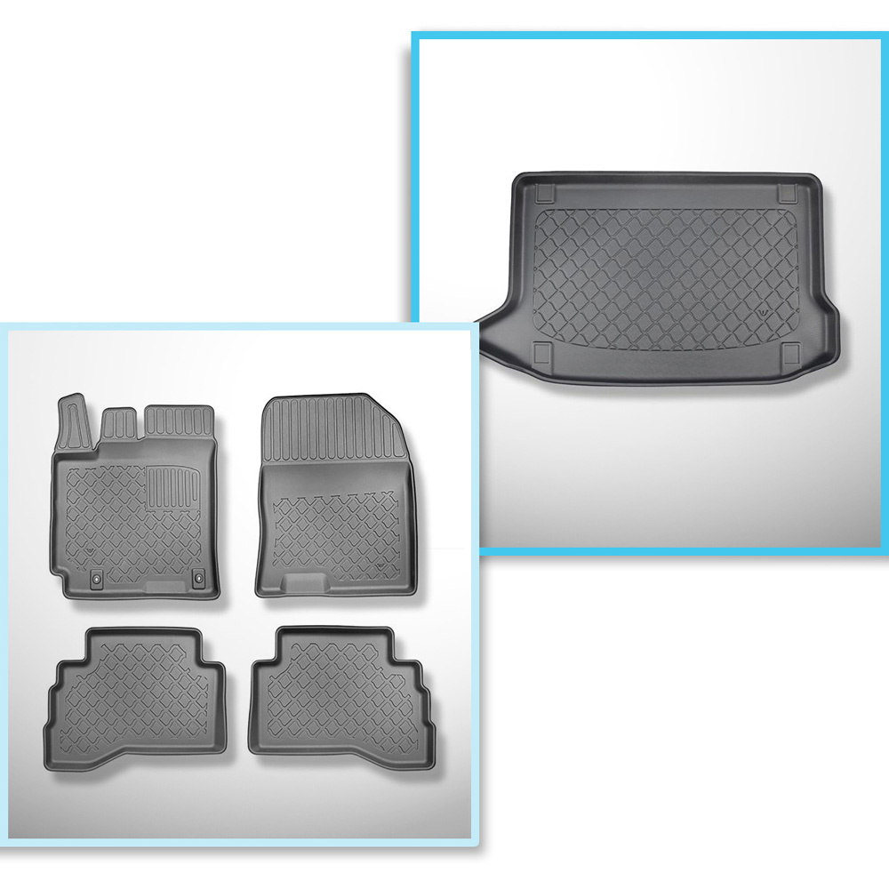 Completo di tappetini e tappetino per bagagliaio TPE per: Hyundai Kona Hybrid 09.2019-03.2023 (SUV) - non per la versione elettrica