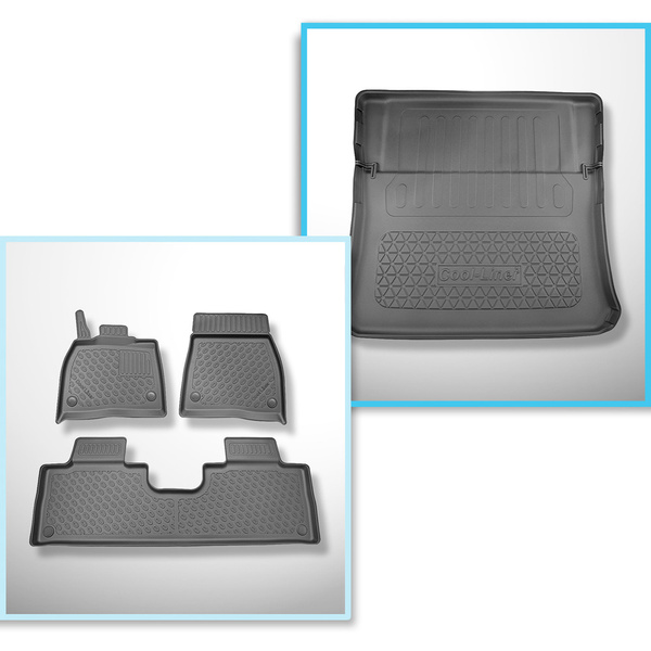 Completo di tappetini e tappetino per bagagliaio TPE per: Mercedes-Benz EQS X296 12.2022-.... (SUV) - 7 posti; terza fila abbassata