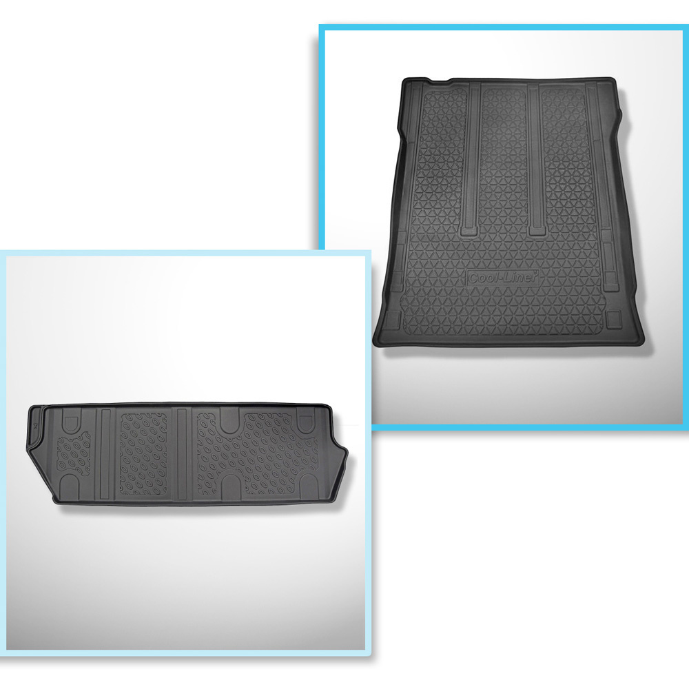 Completo di tappetini e tappetino per bagagliaio TPE per: Mercedes-Benz Vito W447 10.2014-.... (Tourer) - dietro la 2a fila di sedili (sedili 3a fila presenti in auto oppure rimossi); versione lunga (interasse 3200 mm; lunghezza auto 5.140 mm); sedili non