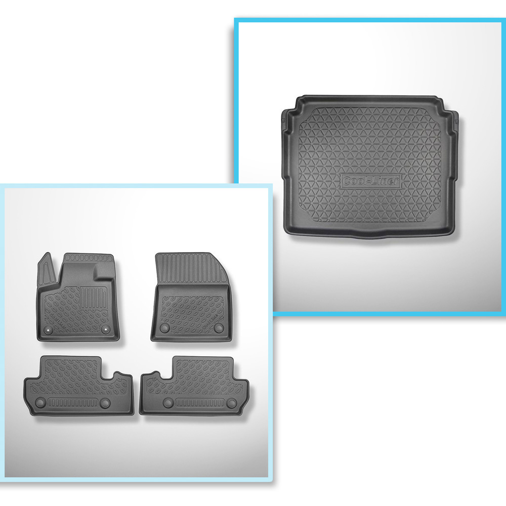 Completo di tappetini e tappetino per bagagliaio TPE per: Peugeot 3008 II 11.2016-11.2023 (SUV) - bagagliaio inferiore predisposto per il pavimento mobile del bagagliaio; sotto/senza pavimento mobile del bagagliaio (Flex Floor); non per la versione ibrida