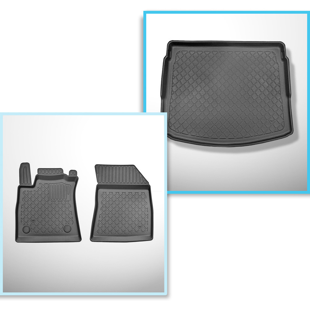 Completo di tappetini e tappetino per bagagliaio TPE per: Renault Megane IV 09.2016-2024 (Sporter) - bagagliaio superiore (soglia di carico piana); pavimento mobile nella posizione più alta; no per E-Tech Plug-in Hybrid