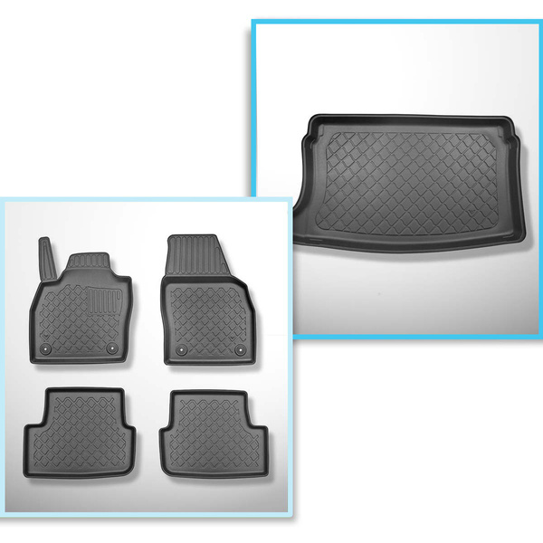 Completo di tappetini e tappetino per bagagliaio TPE per: Seat Ibiza V 6F 06.2017-.... (Hatchback) - bagagliaio superiore; modelli con pavimento del bagagliaio mobile