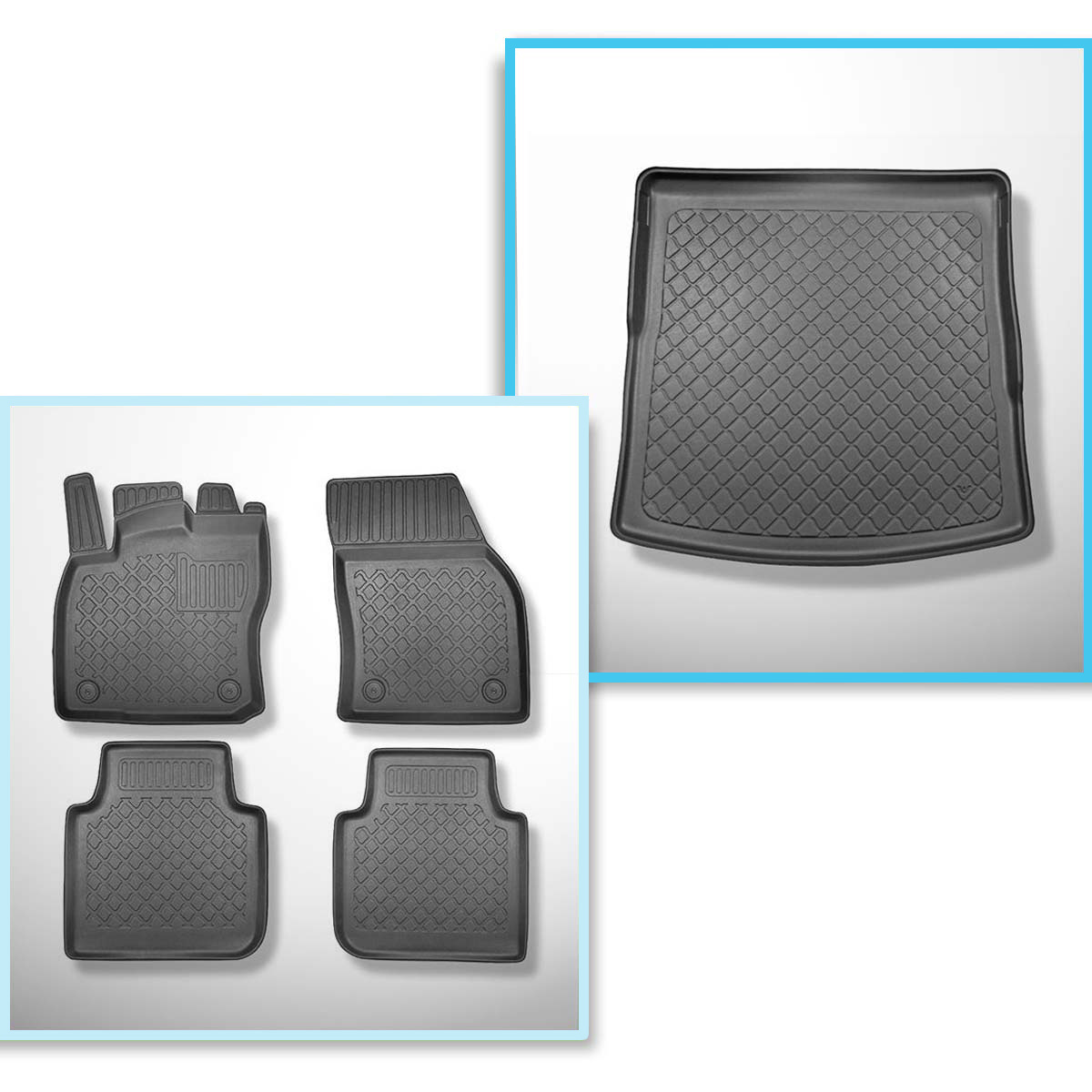 Completo di tappetini e tappetino per bagagliaio TPE per: Skoda Kodiaq 03.2017-10.2023 (SUV) - 5 posti; bagagliaio inferiore senza pavimento mobile / bagagliaio superiore per il pavimento mobile nella posizione più alta; senza terza fila