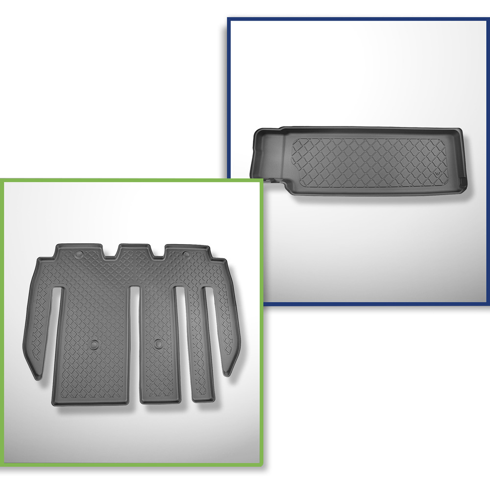 Completo di tappetini e tappetino per bagagliaio TPE per: Tesla Model X 01.2021-.... (SUV) - 7 posti; dietro la 3a fila di sedili