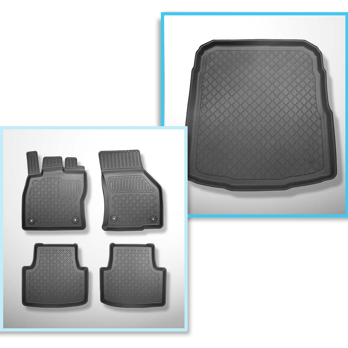 Completo di tappetini e tappetino per bagagliaio TPE per: Volkswagen Passat B8 12.2014-12.2021 (Berlina) - bagagliaio inferiore: con ruota di scorta temporanea o kit di riparazione