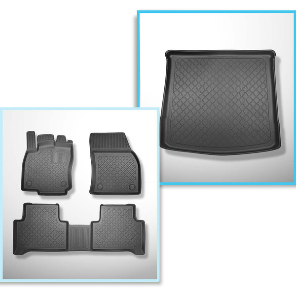 Completo di tappetini e tappetino per bagagliaio TPE per: Volkswagen Touran II 09.2015-.... (Monovolume) - 5/7 posti; 3a fila abbassata