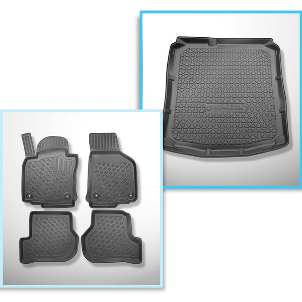 Completo di tappetini e tappetino per bagagliaio TPE PREMIUM per: Volkswagen Jetta 1K 08.2005-2011 (Berlina) - senza ala destra e sinistra