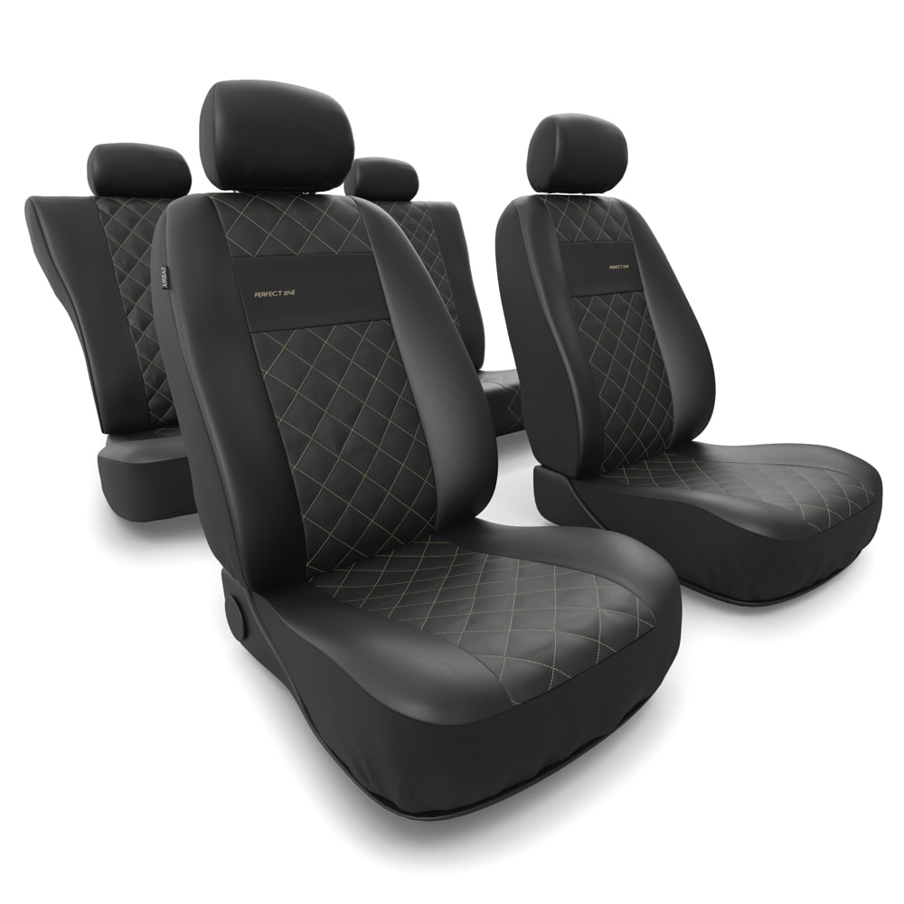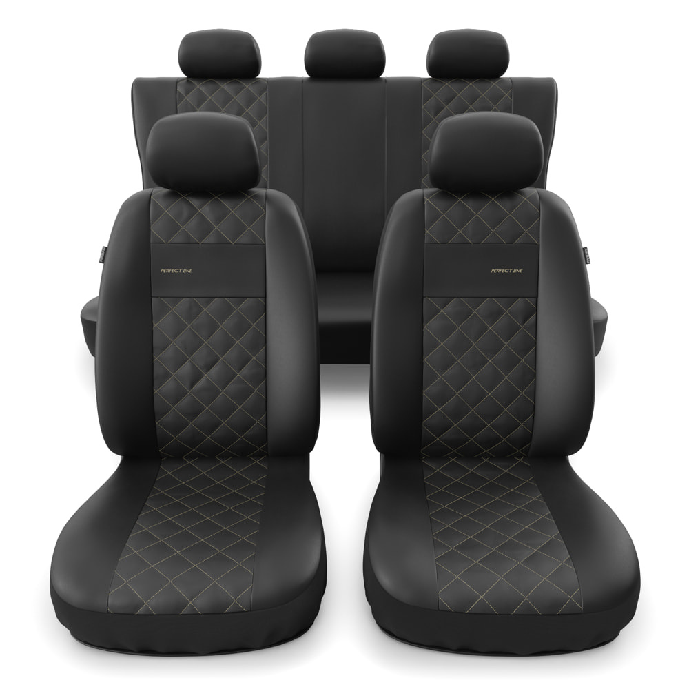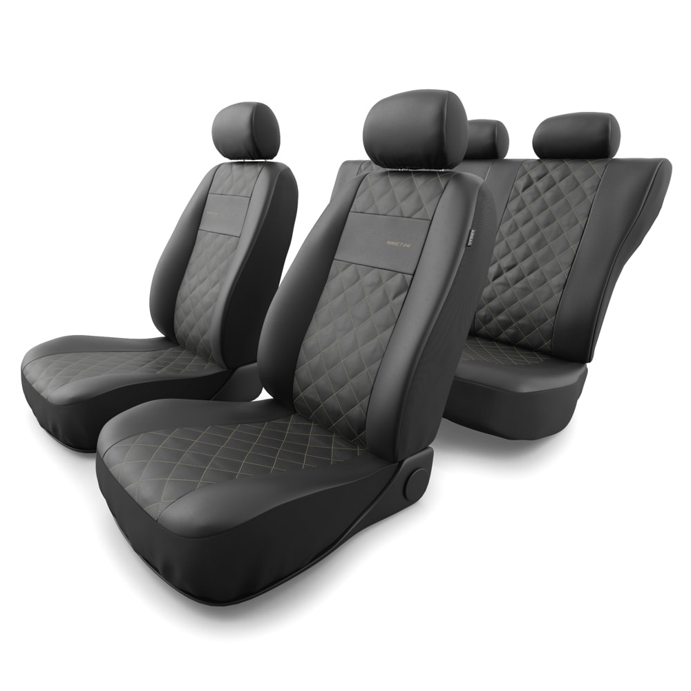 - I coprisedili sono realizzati con similpelle di colore nero resistente all'usura e alle macchie, e nella parte centrale possiedono una trapuntatura decorativa con filo in colore beige. I coprisedili anteriori sono ulteriormente decorati con un ricamo.