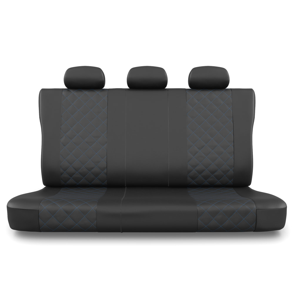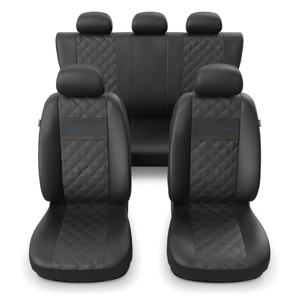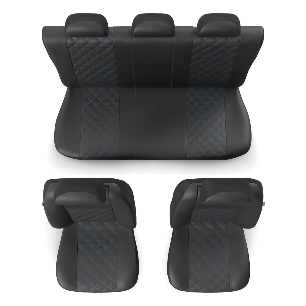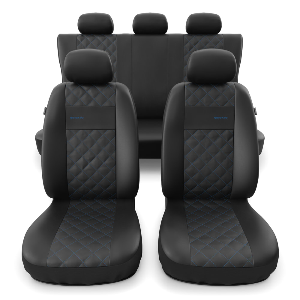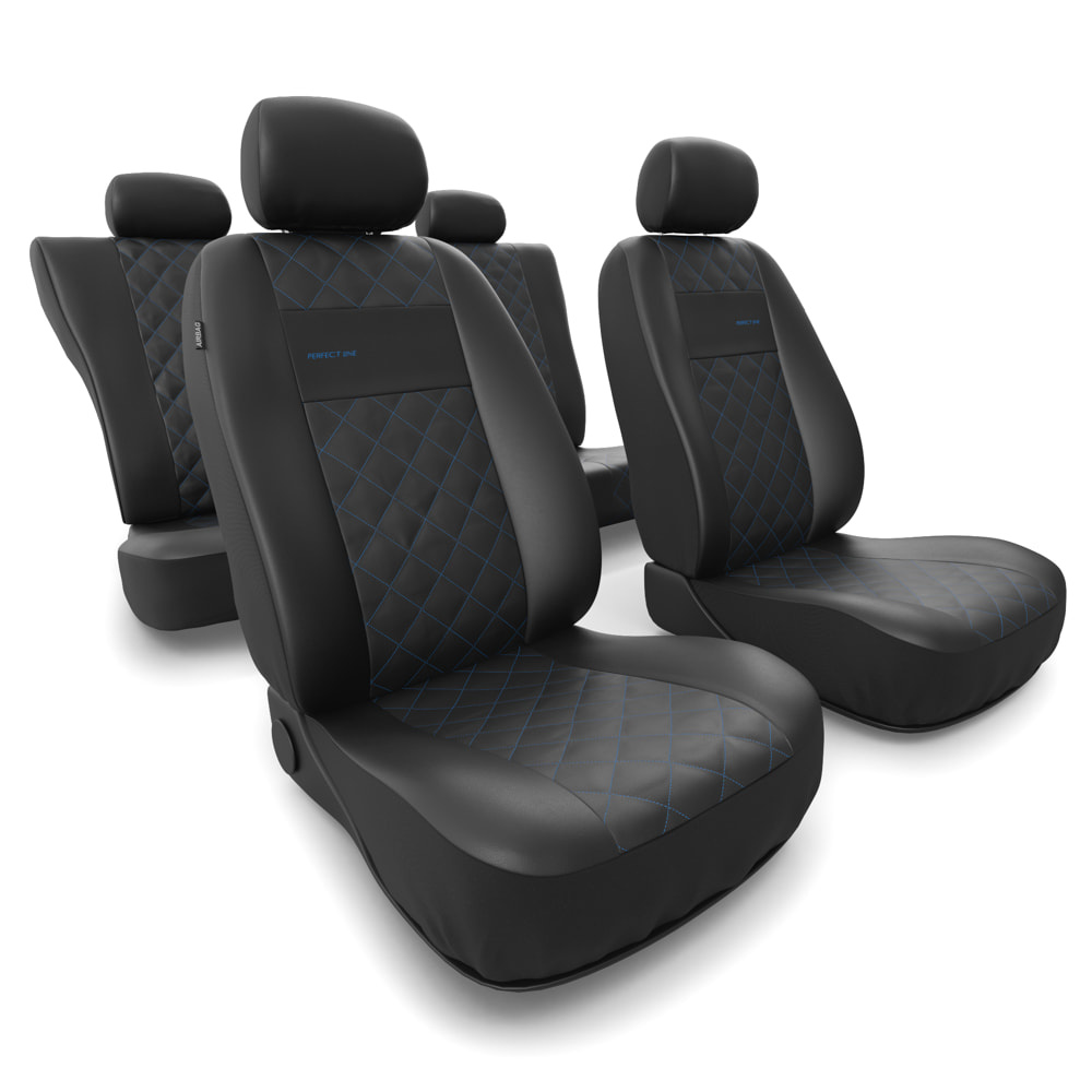 - I coprisedili sono realizzati con similpelle di colore nero resistente all'usura e alle macchie, e nella parte centrale possiedono una trapuntatura decorativa con filo in colore blu. I coprisedili anteriori sono ulteriormente decorati con un ricamo.