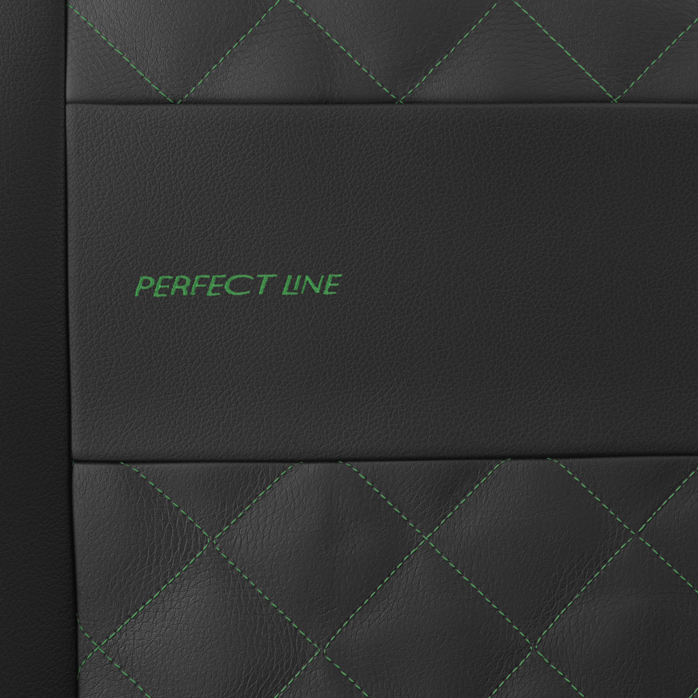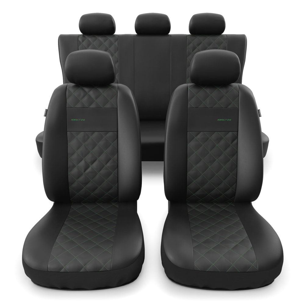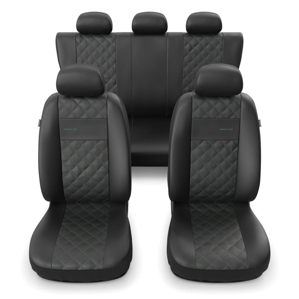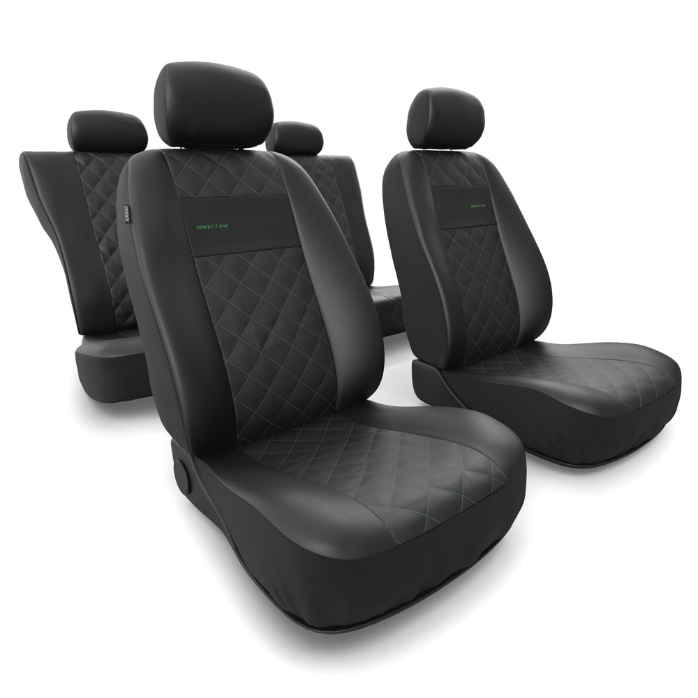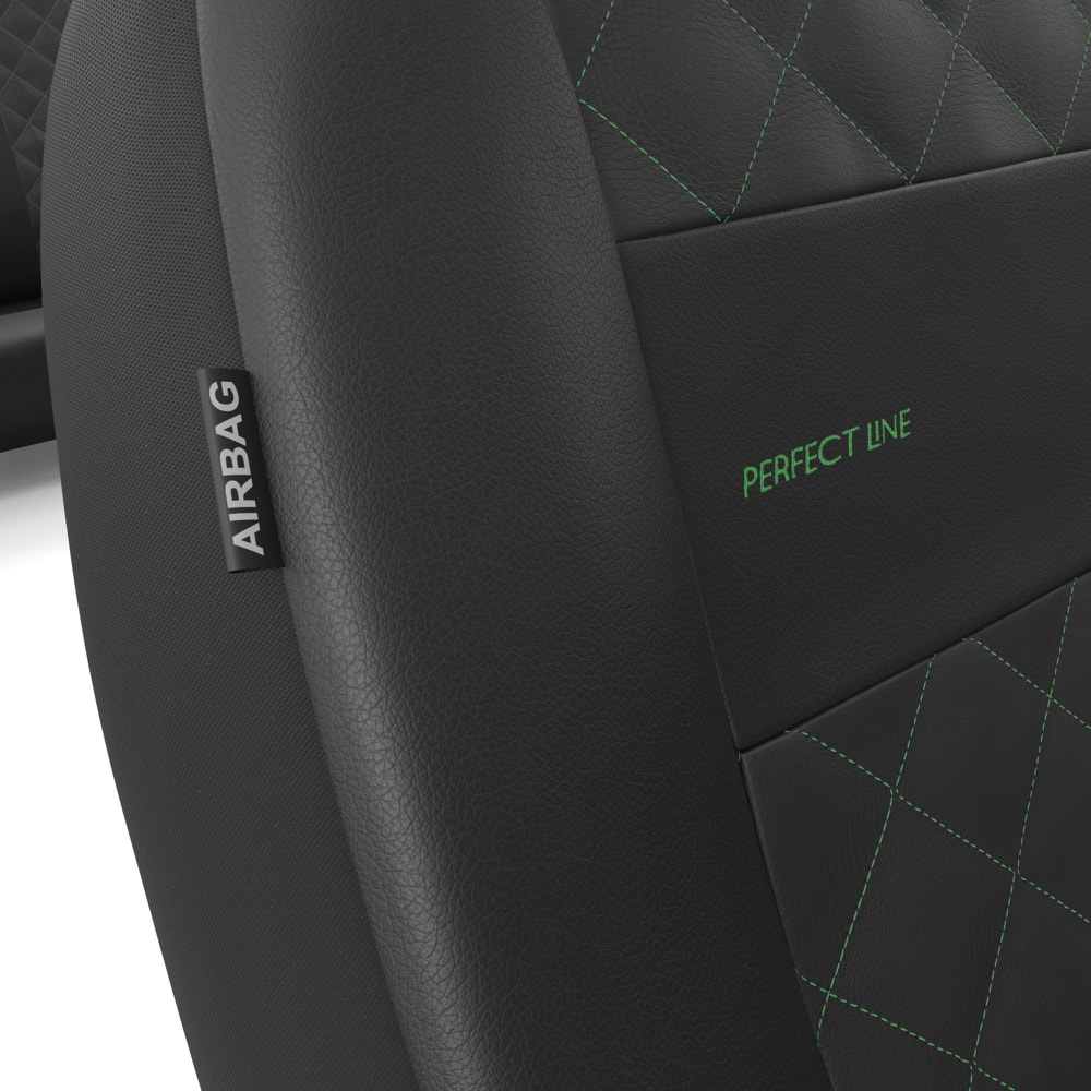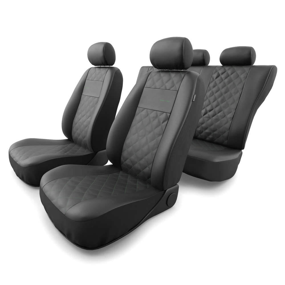- I coprisedili sono realizzati con similpelle di colore nero resistente all'usura e alle macchie, e nella parte centrale possiedono una trapuntatura decorativa con filo in colore verde. I coprisedili anteriori sono ulteriormente decorati con un ricamo.
