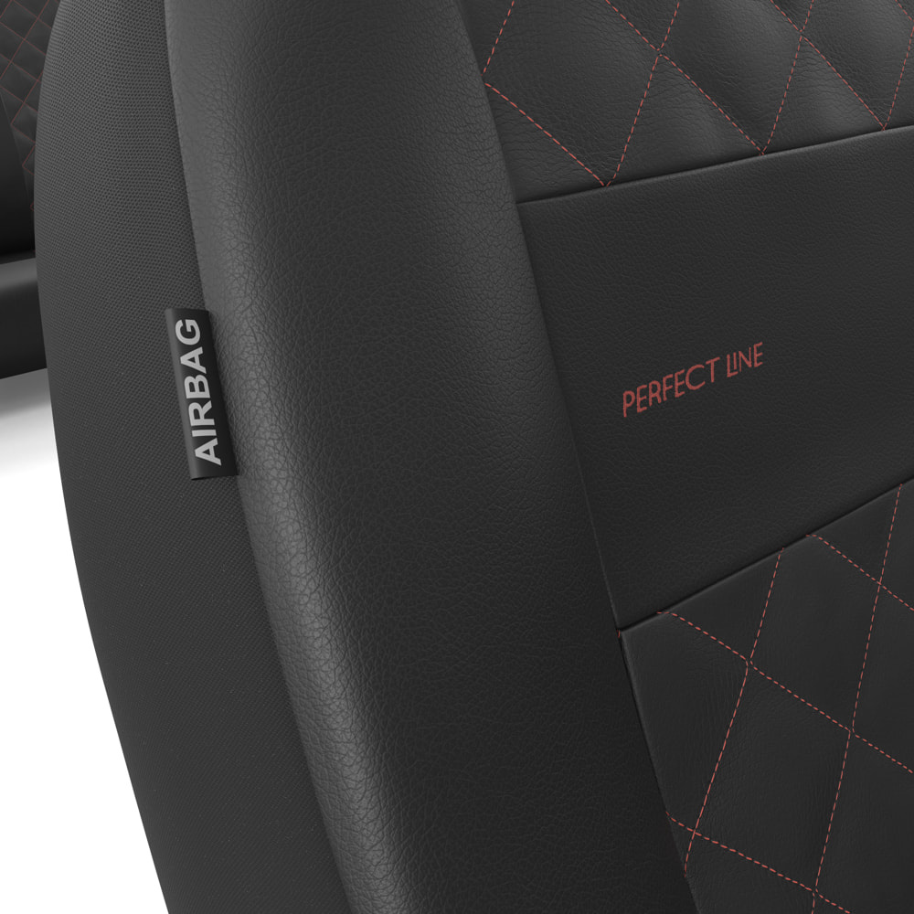 - I coprisedili coprono interamente il sedile e grazie all'utilizzo di cuciture certificate AIRBAG i coprisedili non ostacolano il funzionamento degli airbag.