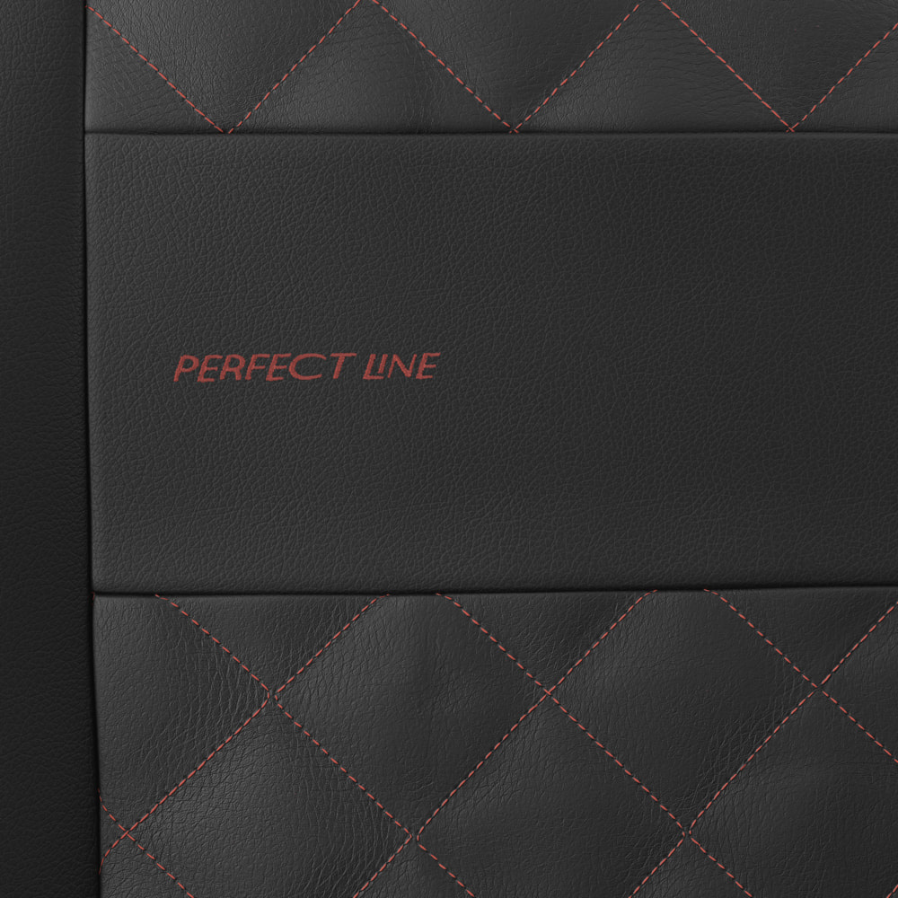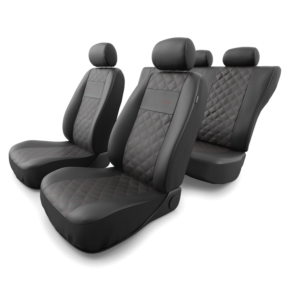 - I coprisedili sono realizzati con similpelle di colore nero resistente all'usura e alle macchie, e nella parte centrale possiedono una trapuntatura decorativa con filo in colore rosso. I coprisedili anteriori sono ulteriormente decorati con un ricamo.