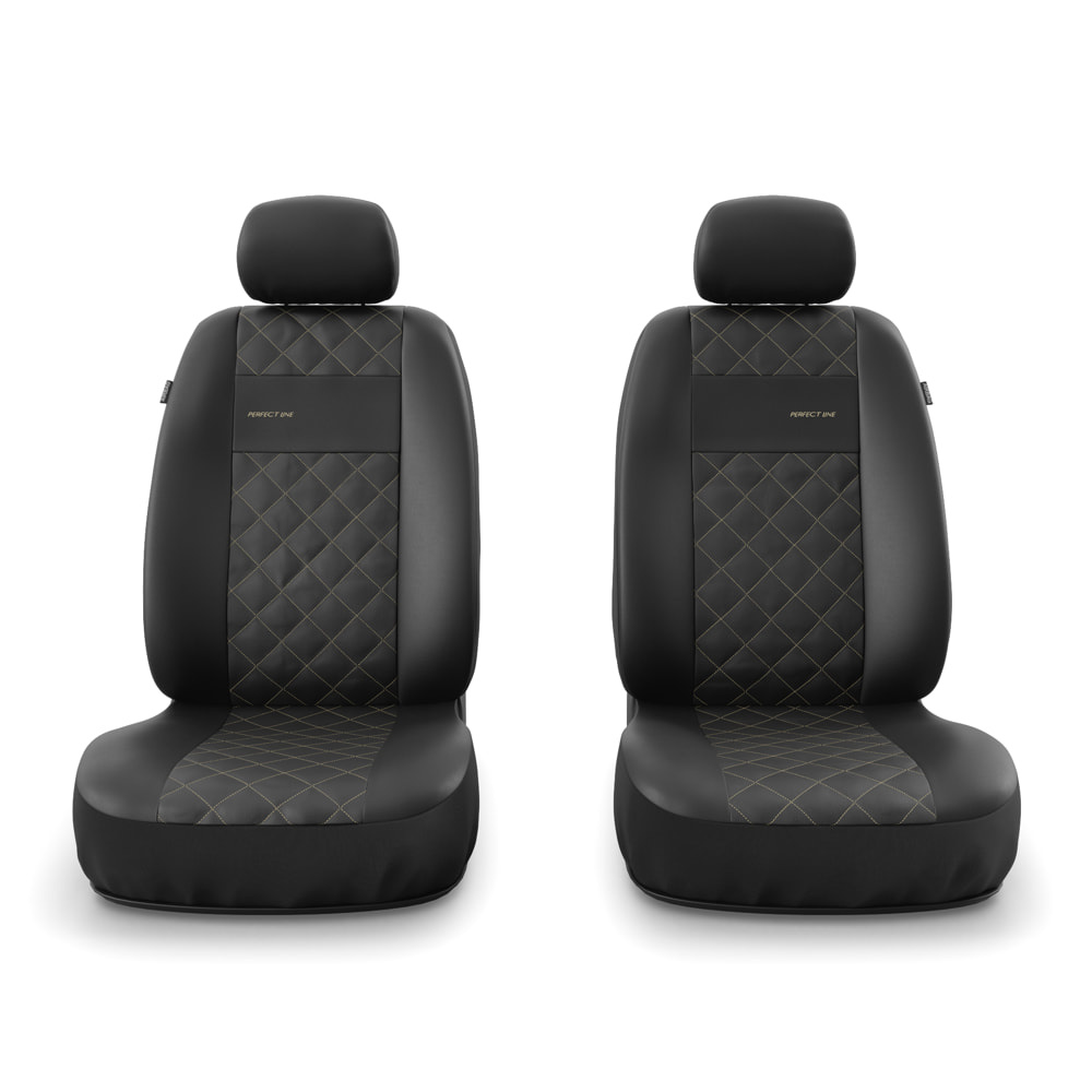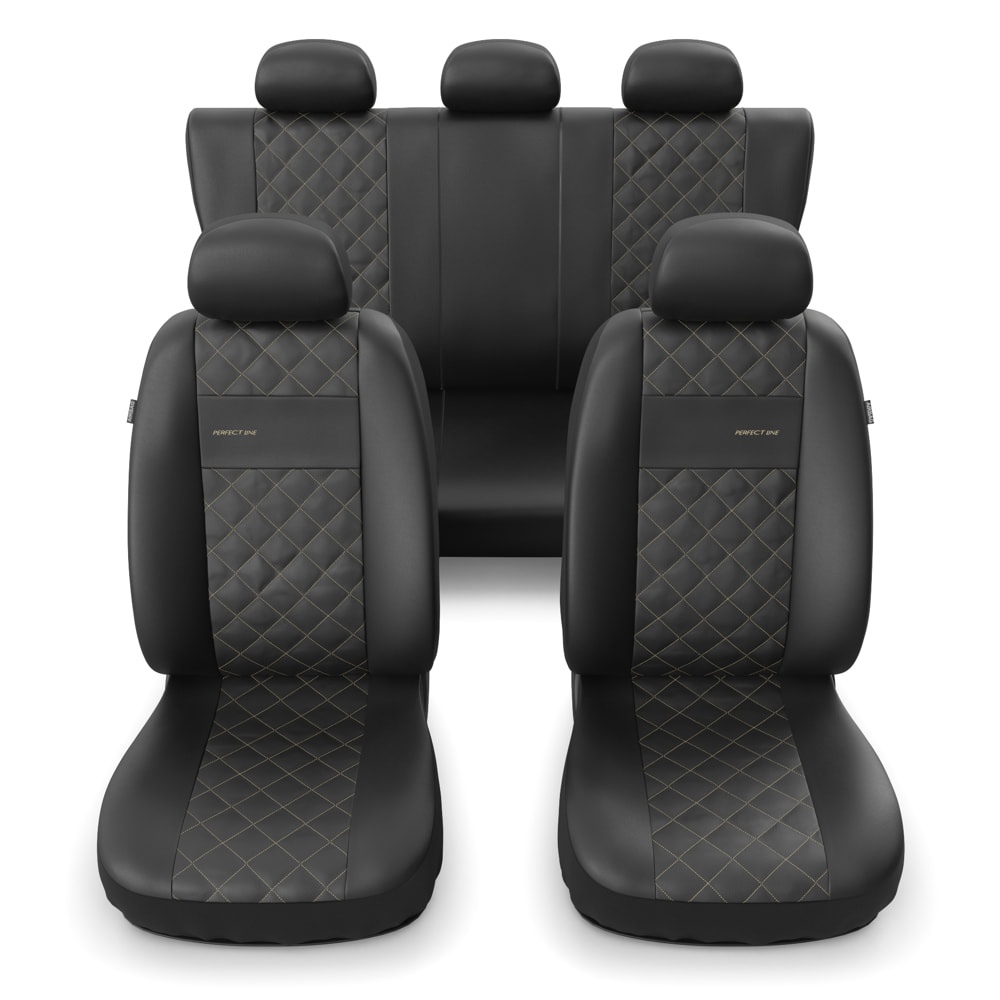 - I coprisedili sono realizzati con similpelle di colore nero resistente all'usura e alle macchie, e nella parte centrale possiedono una trapuntatura decorativa con filo in colore beige. I coprisedili anteriori sono ulteriormente decorati con un ricamo.