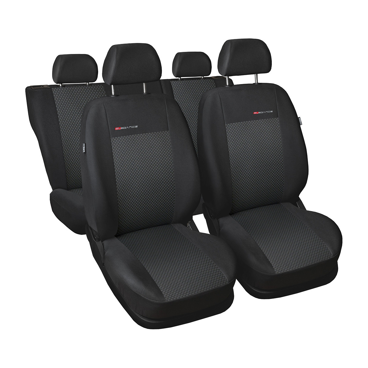 - Grazie all'utilizzo di cuciture certificate AIRBAG i coprisedili non impediscono il funzionamento degli airbag e sono adatti sia ai sedili forniti di airbag laterali che ai sedili standard (senza airbag).