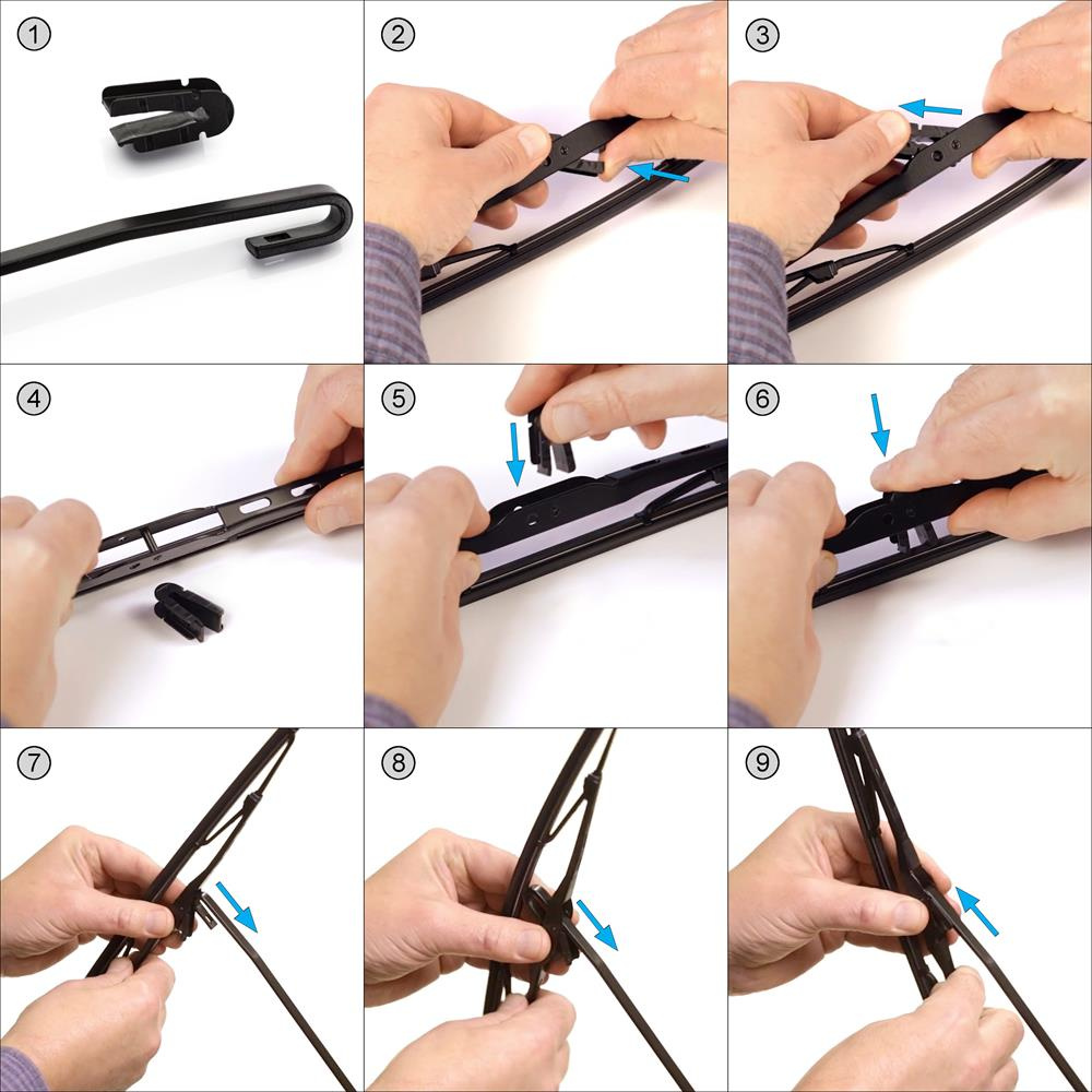 - completo di adattatori (elementi che collegano la spazzola al braccio del tergicristallo): M2 + M9 .