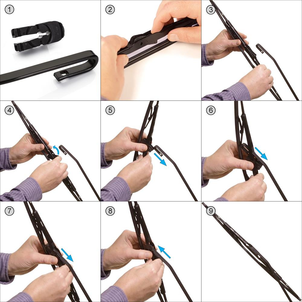 - completo di adattatori (elementi che collegano la spazzola al braccio del tergicristallo): M2 + M9 .