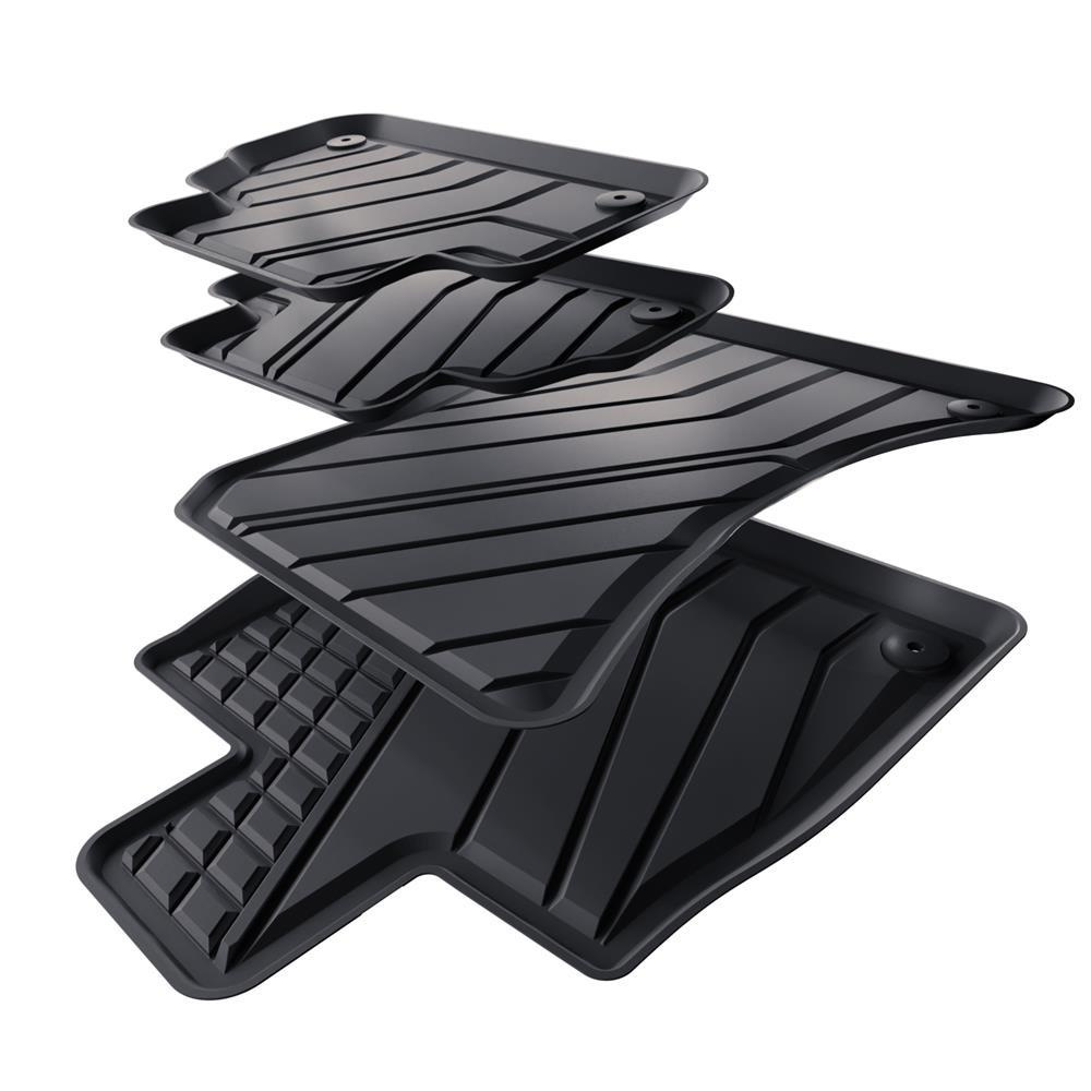 - L'ideale corrispondenza al pavimento e l'utilizzo di fissaggi a seconda del modello di auto prevengono lo spostamento del tappetino durante la guida. La produzione dei tappetini avviene nel rispetto delle norme di qualità più elevate, e i materiali utilizzati per la loro produzione sono sicuri per la salute e riciclabili. I tappetini sono resistenti all'acqua e facili da mantenere puliti (è possibili pulirli con acqua corrente o con idropulitrice a pressione).