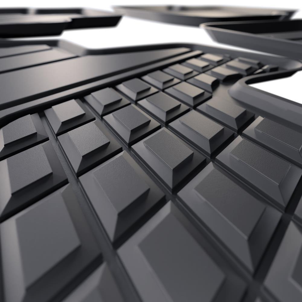 - I tappetini auto sono realizzati con speciale plastica TPE, resistente alle alte e basse temperature, nonché all'azione degli oli e dei composti chimici. I tappetini sono antiscivolo, particolarmente duraturi e hanno un bordo rialzato che trattiene perfettamente lo sporco all'interno del tappetino.