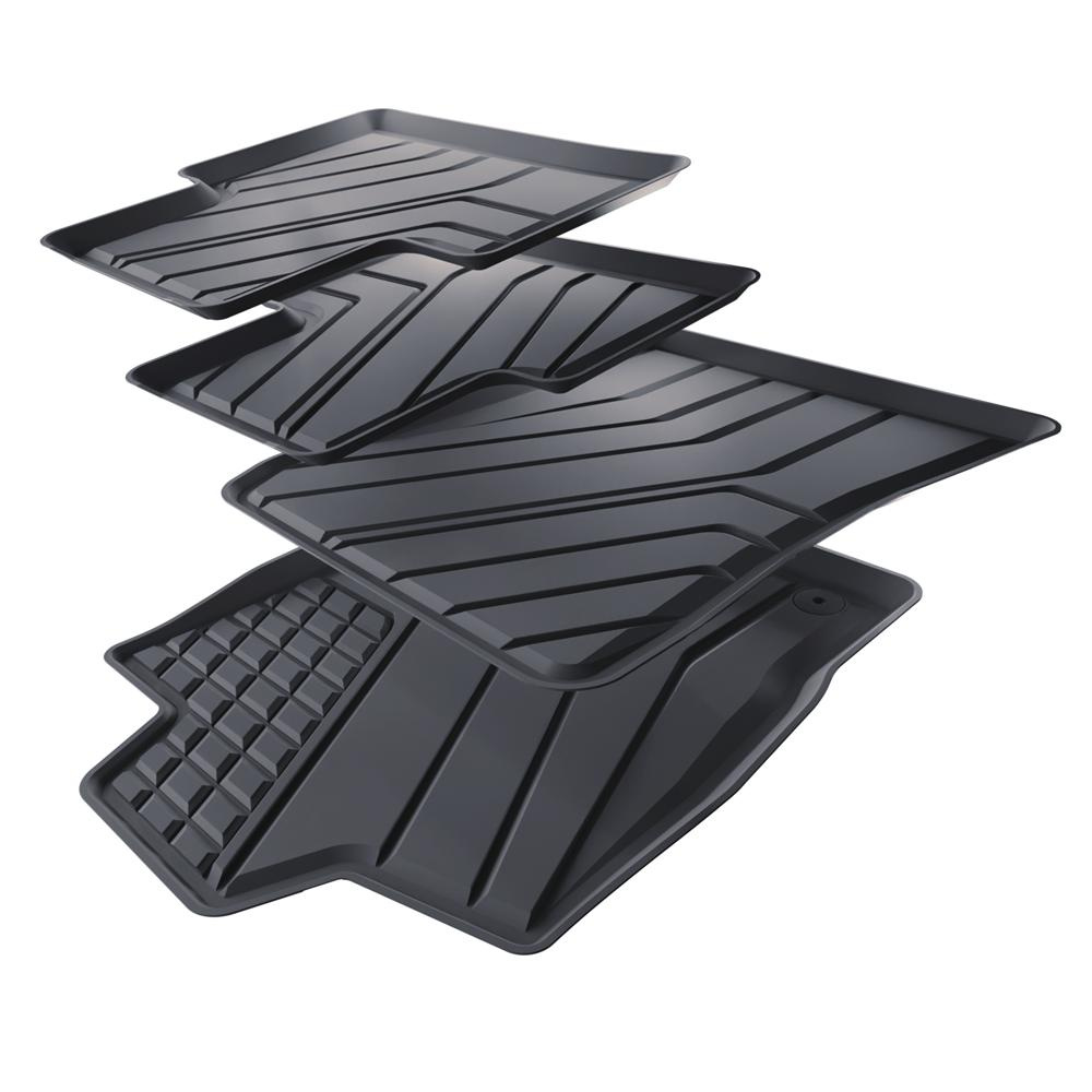 - I tappetini sono caratterizzati da un design moderno con finitura opaca. Ogni completo è realizzato su misura per il determinato modello e versione di auto, per garantire la corrispondenza al 100% al pavimento del veicolo. Nel completo sono previsti anche gli attacchi, se presenti nel determinato modello di auto.