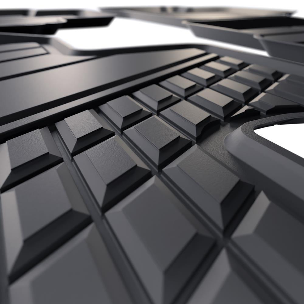- I tappetini auto sono realizzati con speciale plastica TPE, resistente alle alte e basse temperature, nonché all'azione degli oli e dei composti chimici. I tappetini sono antiscivolo, particolarmente duraturi e hanno un bordo rialzato che trattiene perfettamente lo sporco all'interno del tappetino.