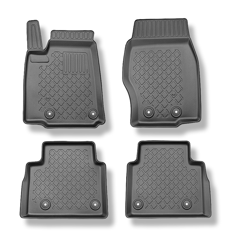 - I tappetini sono caratterizzati da un design moderno con finitura opaca. Ogni set viene prodotto su misura per il dato modello e serie dell’auto, assicurando un adattamento al 100% al pavimento dell'autovettura. Nel completo sono previsti anche gli attacchi, se presenti nel determinato modello di auto.
