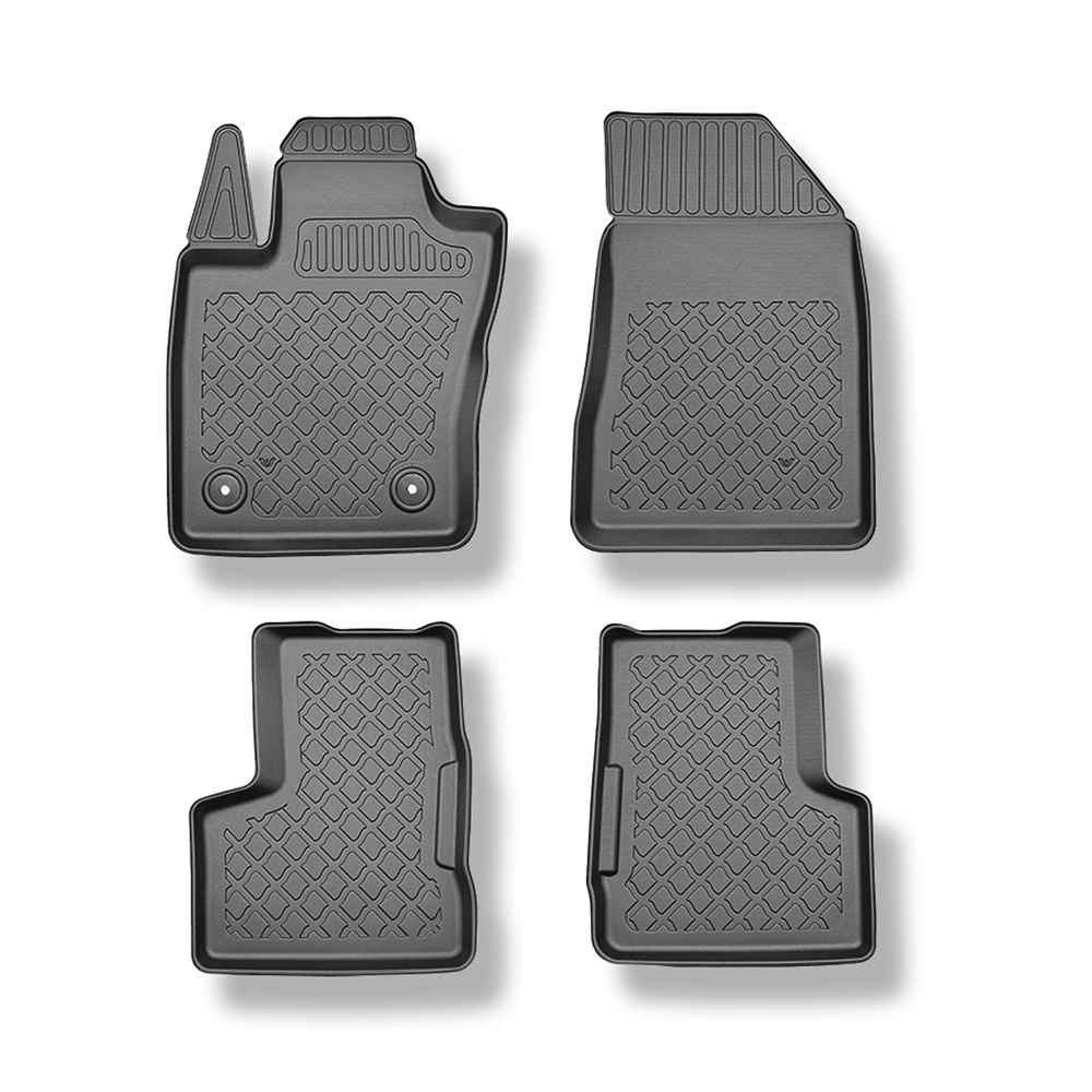 - I tappetini auto sono realizzati con speciale plastica TPE, resistente alle alte e basse temperature, nonché all'azione degli oli e dei composti chimici. I tappetini sono antiscivolo, particolarmente duraturi e hanno un bordo rialzato che trattiene perfettamente lo sporco all'interno del tappetino.