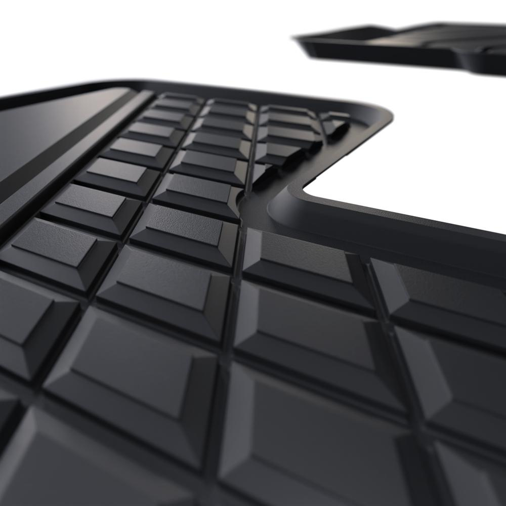 - I tappetini auto sono realizzati con speciale plastica TPE, resistente alle alte e basse temperature, nonché all'azione degli oli e dei composti chimici. I tappetini sono antiscivolo, particolarmente duraturi e hanno un bordo rialzato che trattiene perfettamente lo sporco all'interno del tappetino.