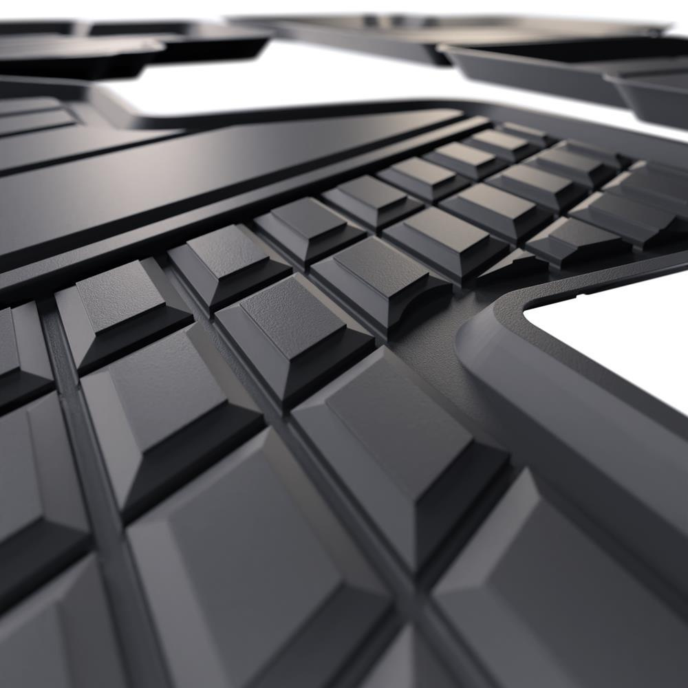 - I tappetini auto sono realizzati con speciale plastica TPE, resistente alle alte e basse temperature, nonché all'azione degli oli e dei composti chimici. I tappetini sono antiscivolo, particolarmente duraturi e hanno un bordo rialzato che trattiene perfettamente lo sporco all'interno del tappetino.
