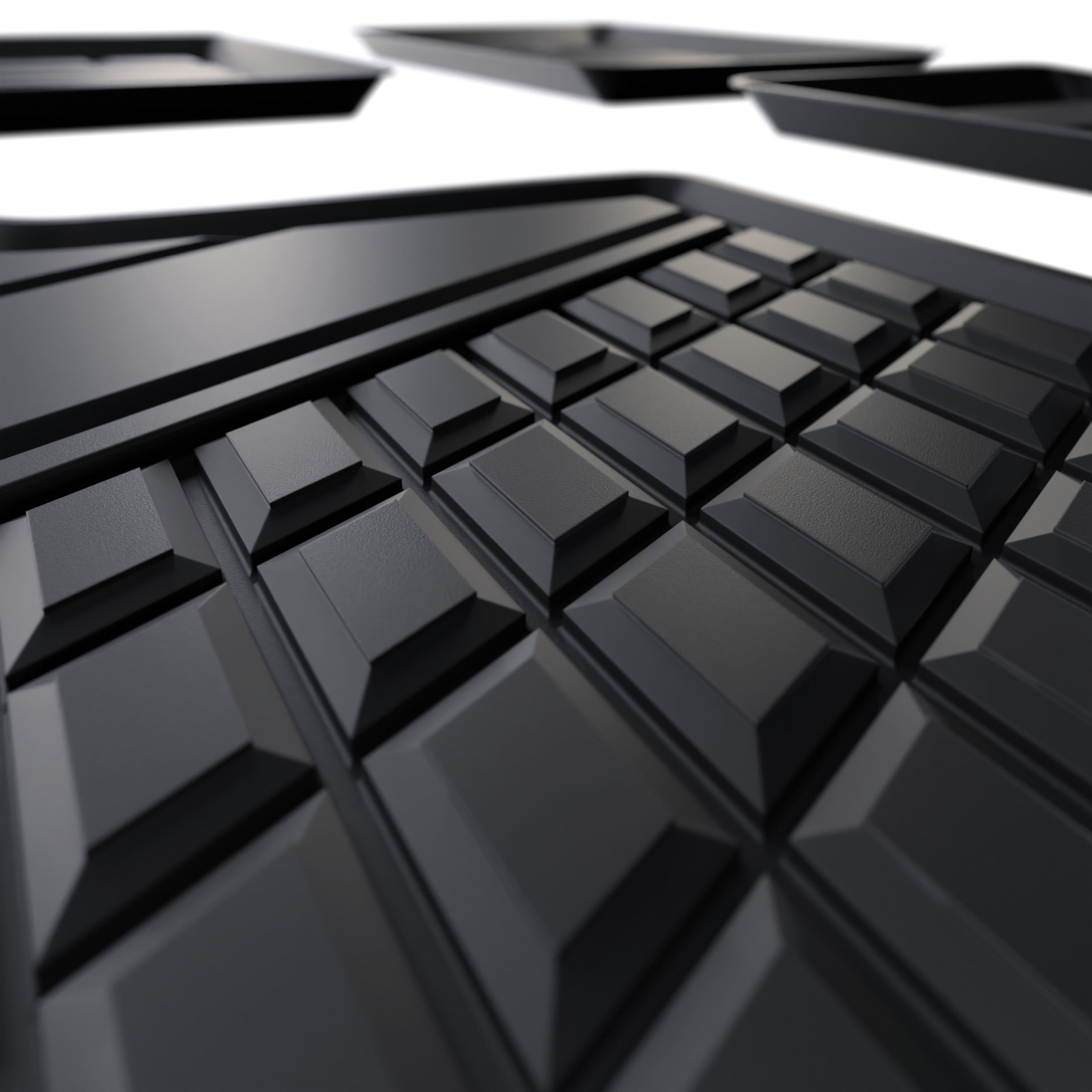 - I tappetini sono caratterizzati da un design moderno con finitura opaca. Ogni completo è realizzato su misura per il determinato modello e versione di auto, per garantire la corrispondenza al 100% al pavimento del veicolo. Nel completo sono previsti anche gli attacchi, se presenti nel determinato modello di auto.