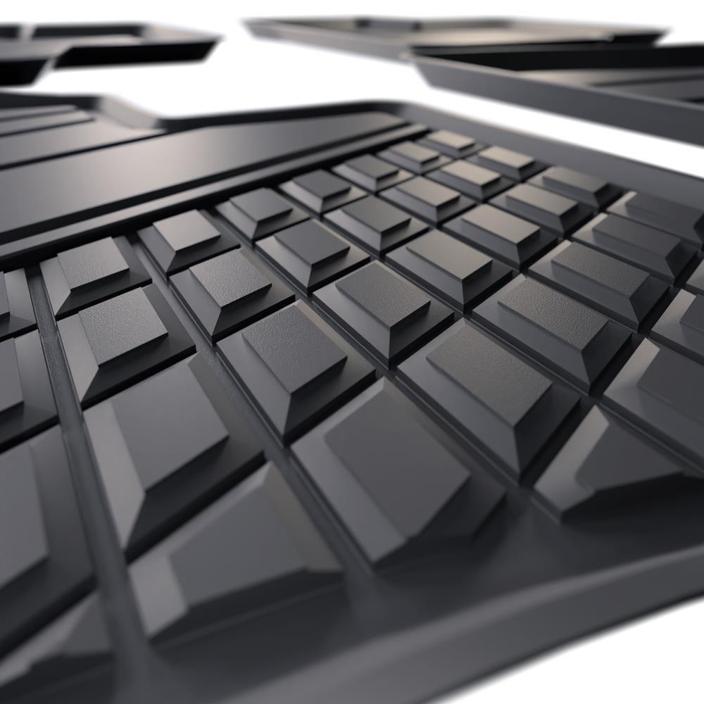 - I tappetini auto sono realizzati con speciale plastica TPE, resistente alle alte e basse temperature, nonché all'azione degli oli e dei composti chimici. I tappetini sono antiscivolo, particolarmente duraturi e hanno un bordo rialzato che trattiene perfettamente lo sporco all'interno del tappetino.