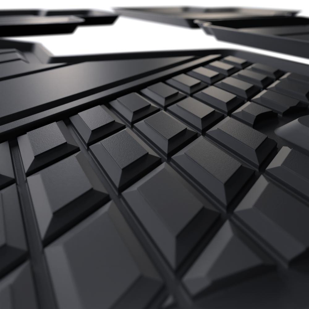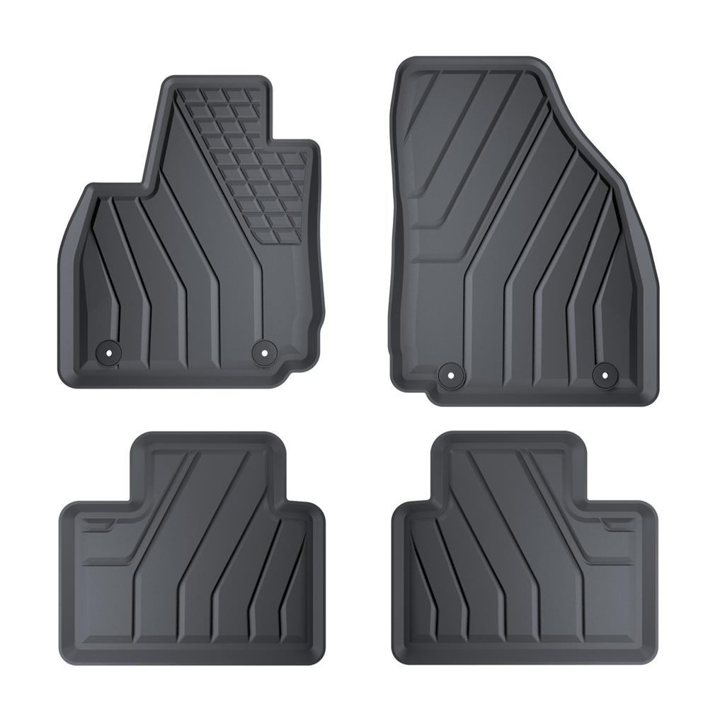 - I tappetini auto sono realizzati con speciale plastica TPE, resistente alle alte e basse temperature, nonché all'azione degli oli e dei composti chimici. I tappetini sono antiscivolo, particolarmente duraturi e hanno un bordo rialzato che trattiene perfettamente lo sporco all'interno del tappetino.