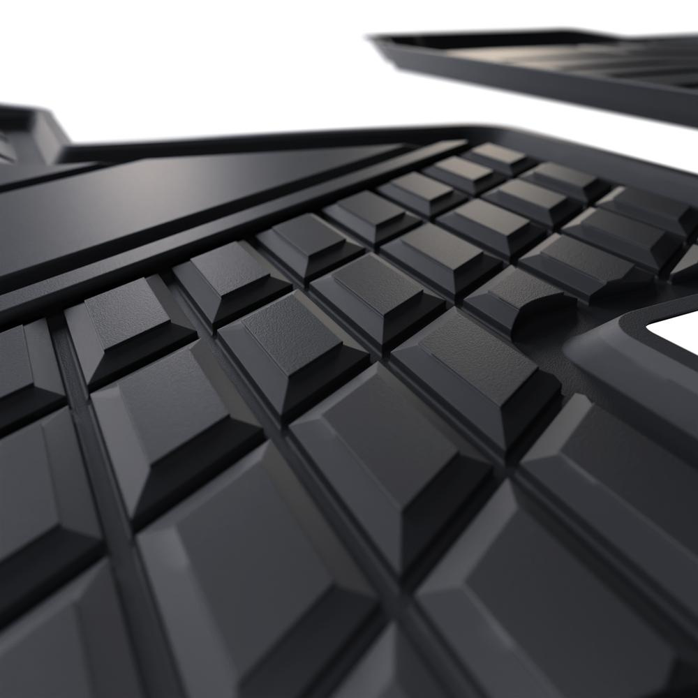 - I tappetini auto sono realizzati con speciale plastica TPE, resistente alle alte e basse temperature, nonché all'azione degli oli e dei composti chimici. I tappetini sono antiscivolo, particolarmente duraturi e hanno un bordo rialzato che trattiene perfettamente lo sporco all'interno del tappetino.