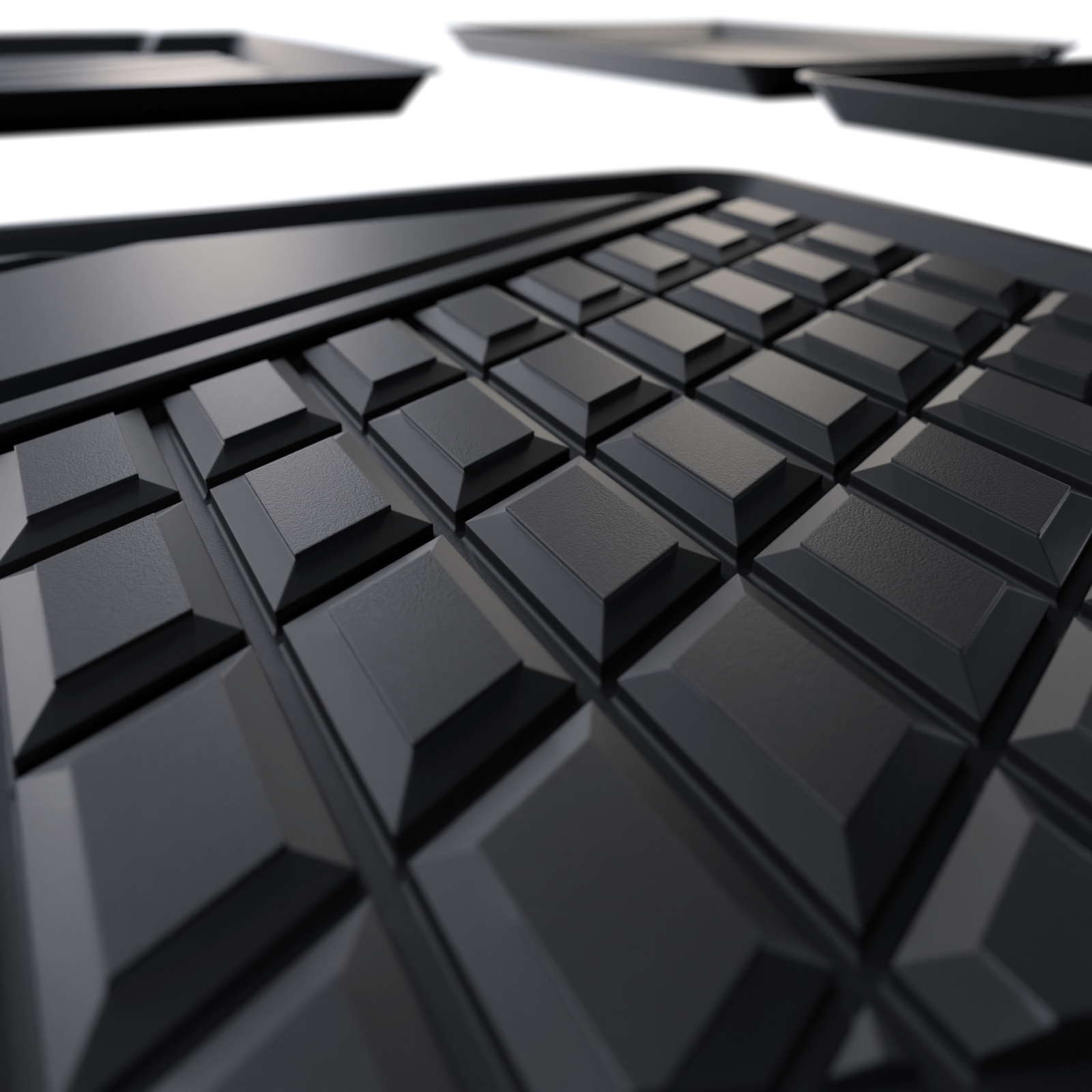 - I tappetini auto sono realizzati con speciale plastica TPE, resistente alle alte e basse temperature, nonché all'azione degli oli e dei composti chimici. I tappetini sono antiscivolo, particolarmente duraturi e hanno un bordo rialzato che trattiene perfettamente lo sporco all'interno del tappetino.