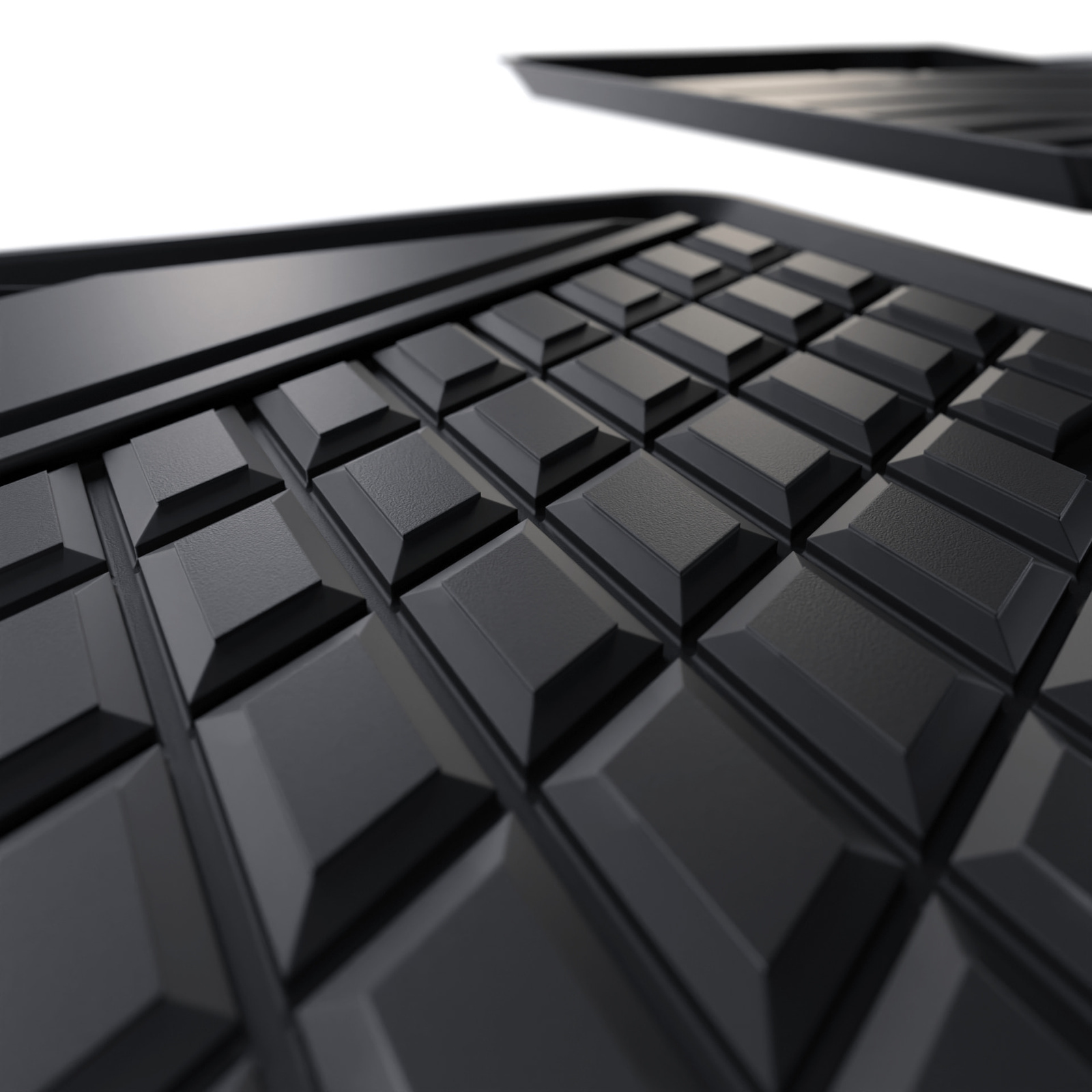 - I tappetini auto sono realizzati con speciale plastica TPE, resistente alle alte e basse temperature, nonché all'azione degli oli e dei composti chimici. I tappetini sono antiscivolo, particolarmente duraturi e hanno un bordo rialzato che trattiene perfettamente lo sporco all'interno del tappetino.