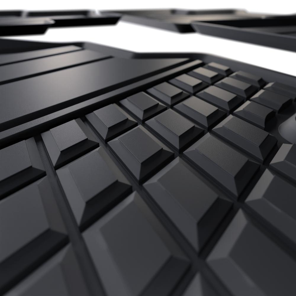 - I tappetini auto sono realizzati con speciale plastica TPE, resistente alle alte e basse temperature, nonché all'azione degli oli e dei composti chimici. I tappetini sono antiscivolo, particolarmente duraturi e hanno un bordo rialzato che trattiene perfettamente lo sporco all'interno del tappetino.