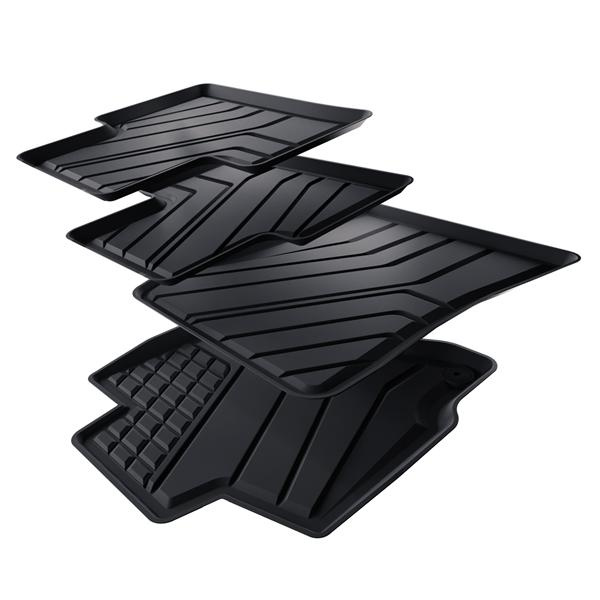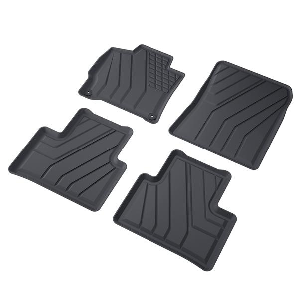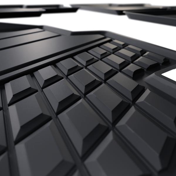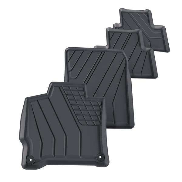 - I tappetini auto sono realizzati con speciale plastica TPE, resistente alle alte e basse temperature, nonché all'azione degli oli e dei composti chimici. I tappetini sono antiscivolo, particolarmente duraturi e hanno un bordo rialzato che trattiene perfettamente lo sporco all'interno del tappetino.