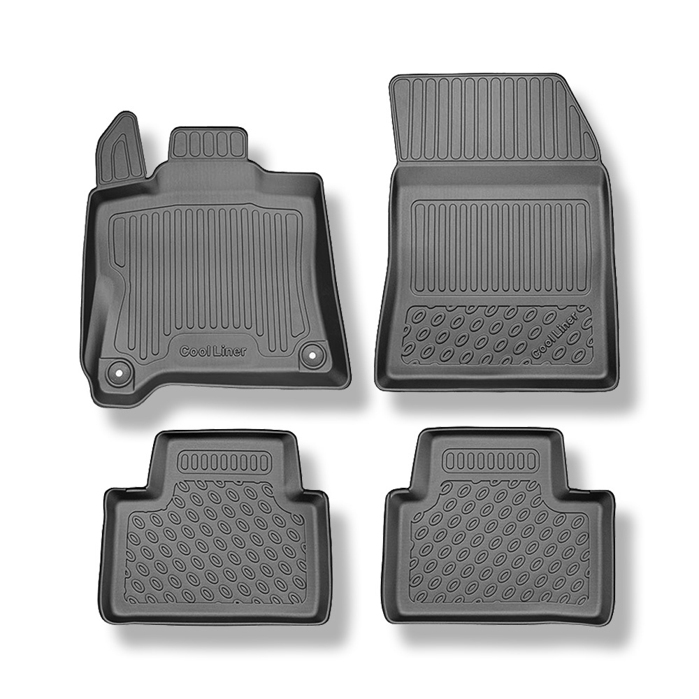 - I tappetini sono caratterizzati da un design moderno con finitura opaca. Ogni set viene prodotto su misura per il dato modello e serie dell’auto, assicurando un adattamento al 100% al pavimento dell'autovettura. Nel completo sono previsti anche gli attacchi, se presenti nel determinato modello di auto.