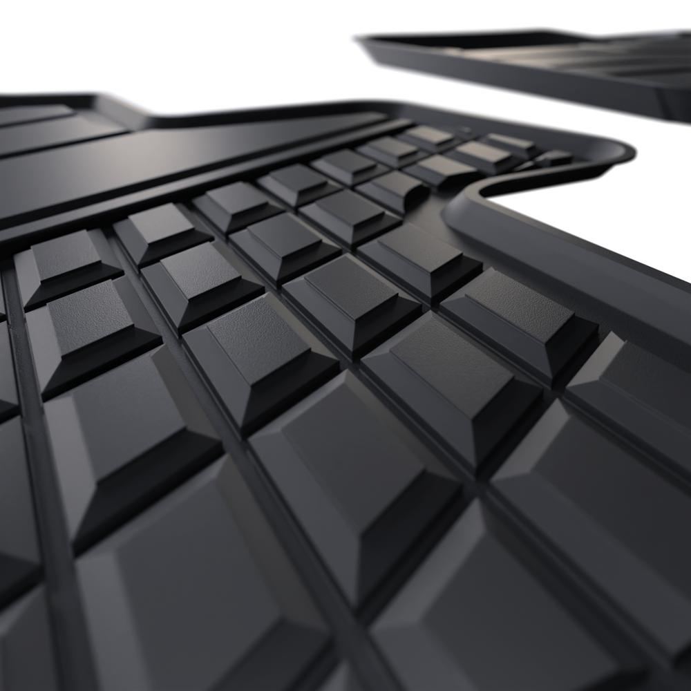 - I tappetini auto sono realizzati con speciale plastica TPE, resistente alle alte e basse temperature, nonché all'azione degli oli e dei composti chimici. I tappetini sono antiscivolo, particolarmente duraturi e hanno un bordo rialzato che trattiene perfettamente lo sporco all'interno del tappetino.