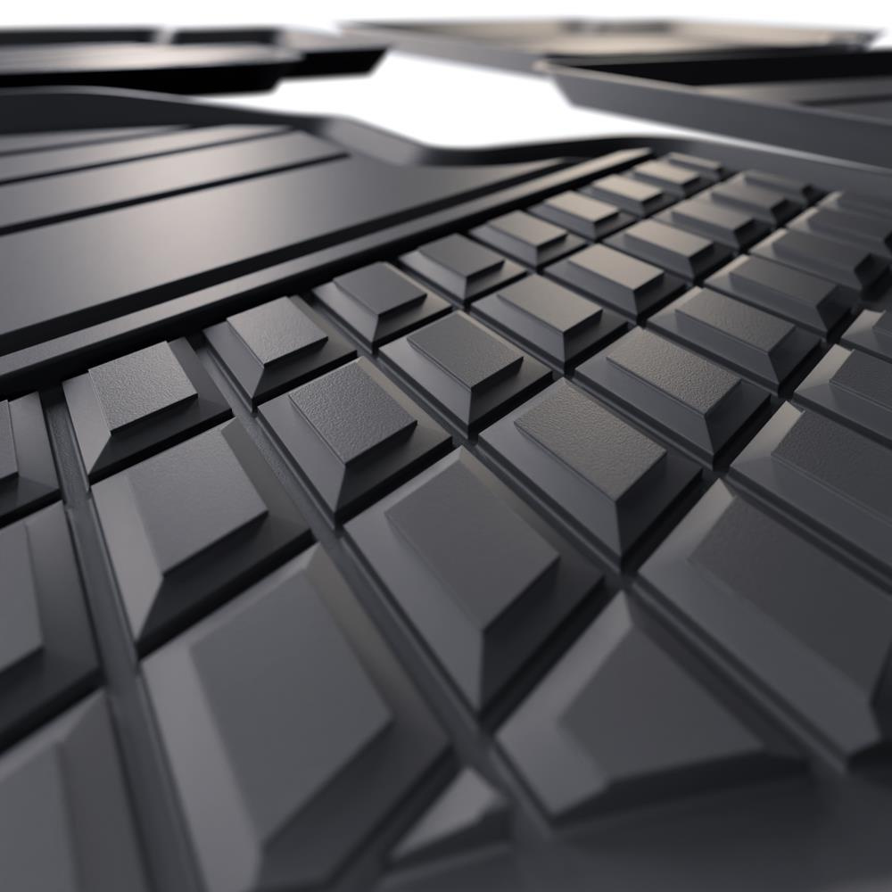 - I tappetini auto sono realizzati con speciale plastica TPE, resistente alle alte e basse temperature, nonché all'azione degli oli e dei composti chimici. I tappetini sono antiscivolo, particolarmente duraturi e hanno un bordo rialzato che trattiene perfettamente lo sporco all'interno del tappetino.