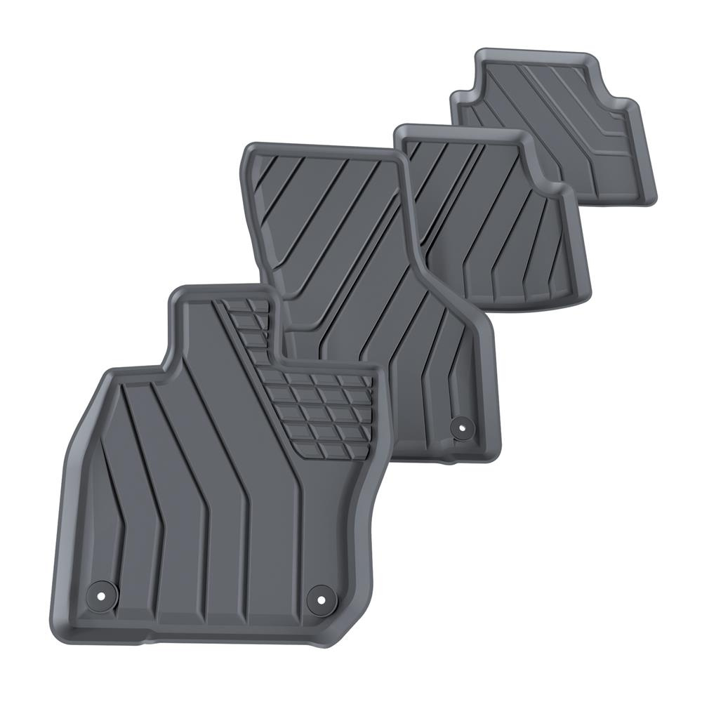 - I tappetini auto sono realizzati con speciale plastica TPE, resistente alle alte e basse temperature, nonché all'azione degli oli e dei composti chimici. I tappetini sono antiscivolo, particolarmente duraturi e hanno un bordo rialzato che trattiene perfettamente lo sporco all'interno del tappetino.