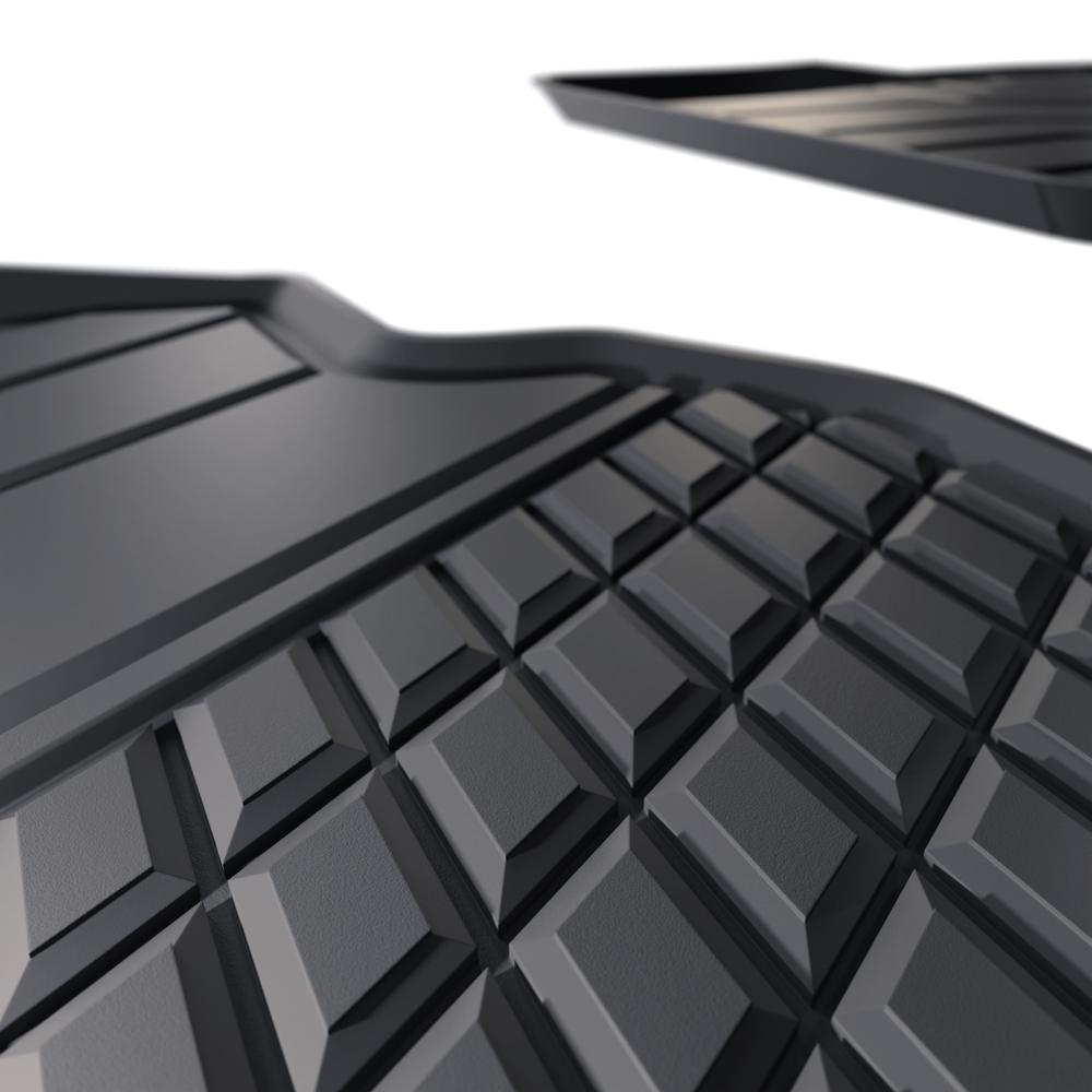 - I tappetini auto sono realizzati con speciale plastica TPE, resistente alle alte e basse temperature, nonché all'azione degli oli e dei composti chimici. I tappetini sono antiscivolo, particolarmente duraturi e hanno un bordo rialzato che trattiene perfettamente lo sporco all'interno del tappetino.