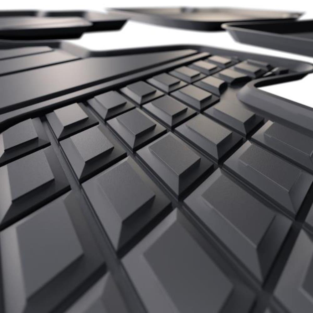 - I tappetini auto sono realizzati con speciale plastica TPE, resistente alle alte e basse temperature, nonché all'azione degli oli e dei composti chimici. I tappetini sono antiscivolo, particolarmente duraturi e hanno un bordo rialzato che trattiene perfettamente lo sporco all'interno del tappetino.